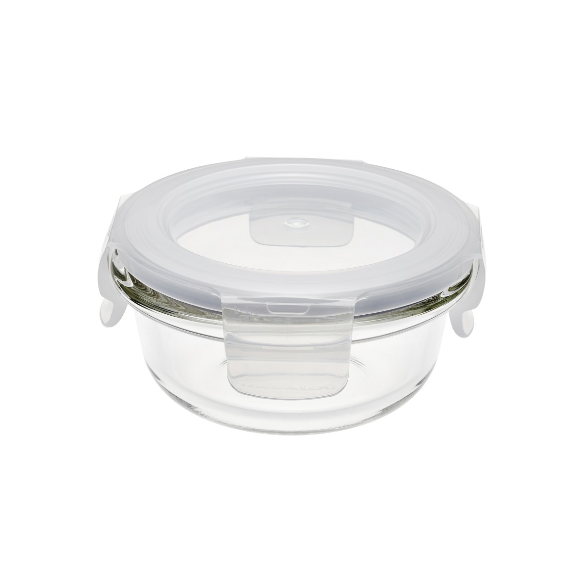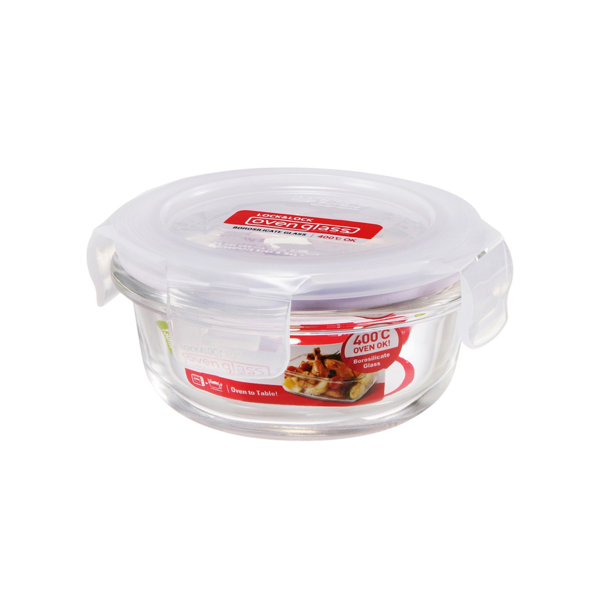100% airtight borosilicate ovenware, suitable for serving and food preservation. Glass container has four side locking lid. Airtightness extends the food shelf life and keeps the refrigerator odorless.