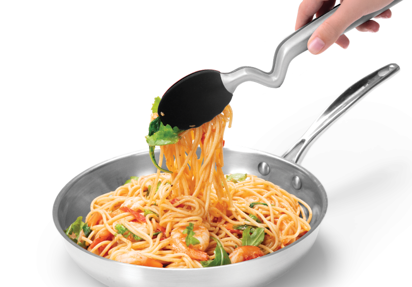 Clongs tangid avanevad kerge nupuvajutusega, silikooni ning terase kombinatsioon teeb need tugevaks ja samas õrnaks nõude vastu.