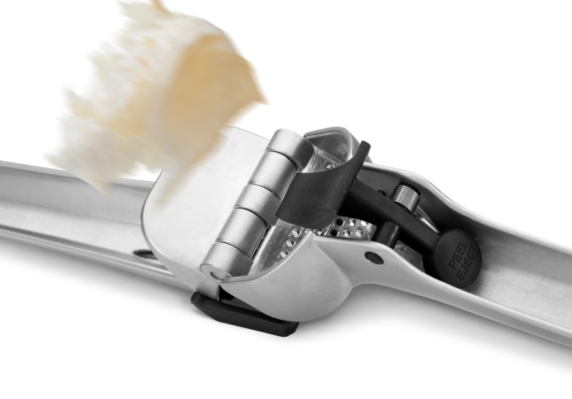 Lihtsalt vajuta kooreväljutusnuppu ja lennuta jäägid prügikasti. Seejärel loputa kergelt ja ongi uuesti puhas - ka käed ei saa küüslauguga kokku!