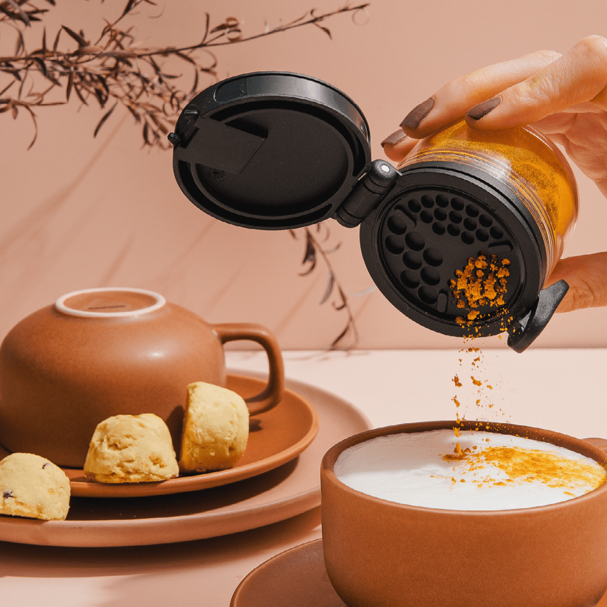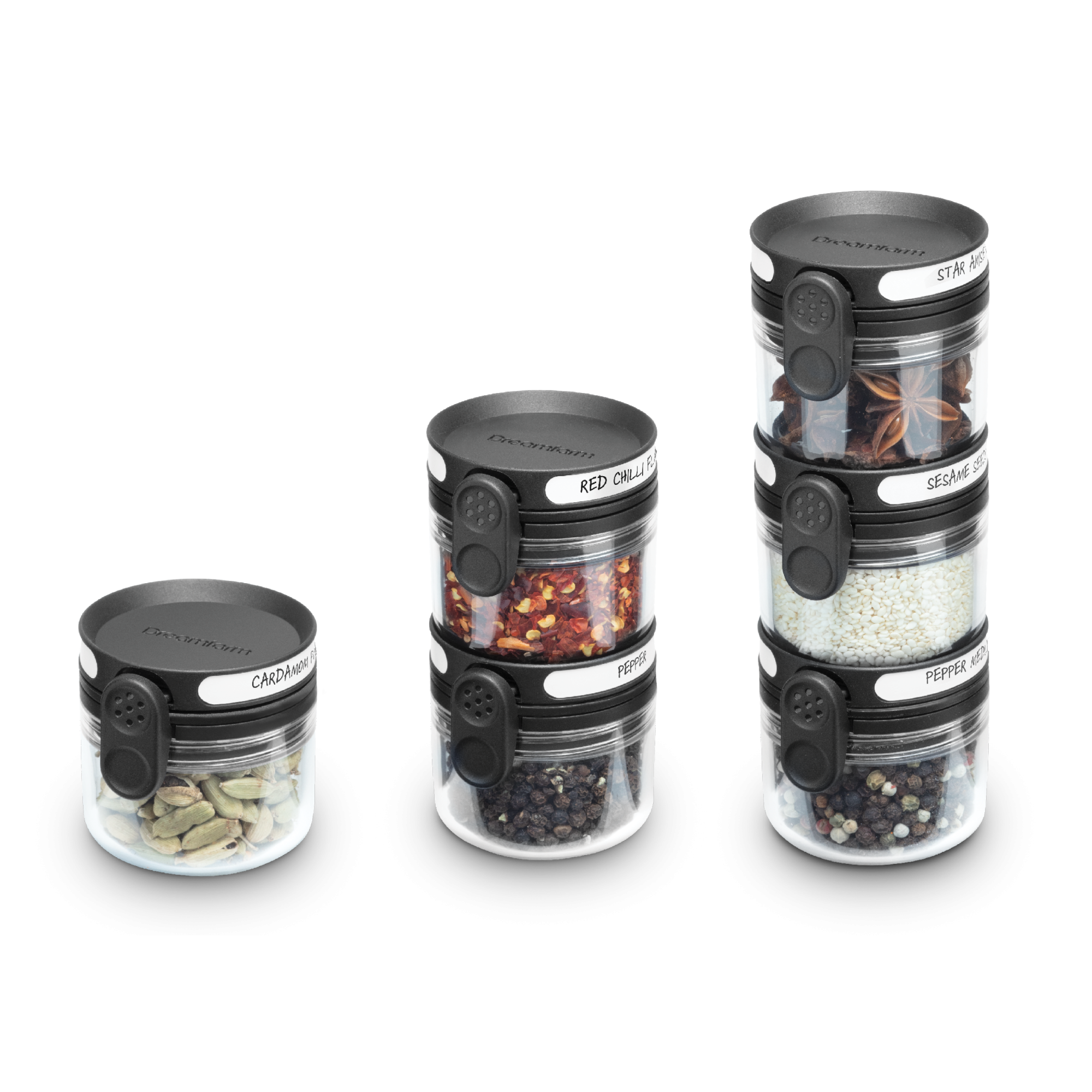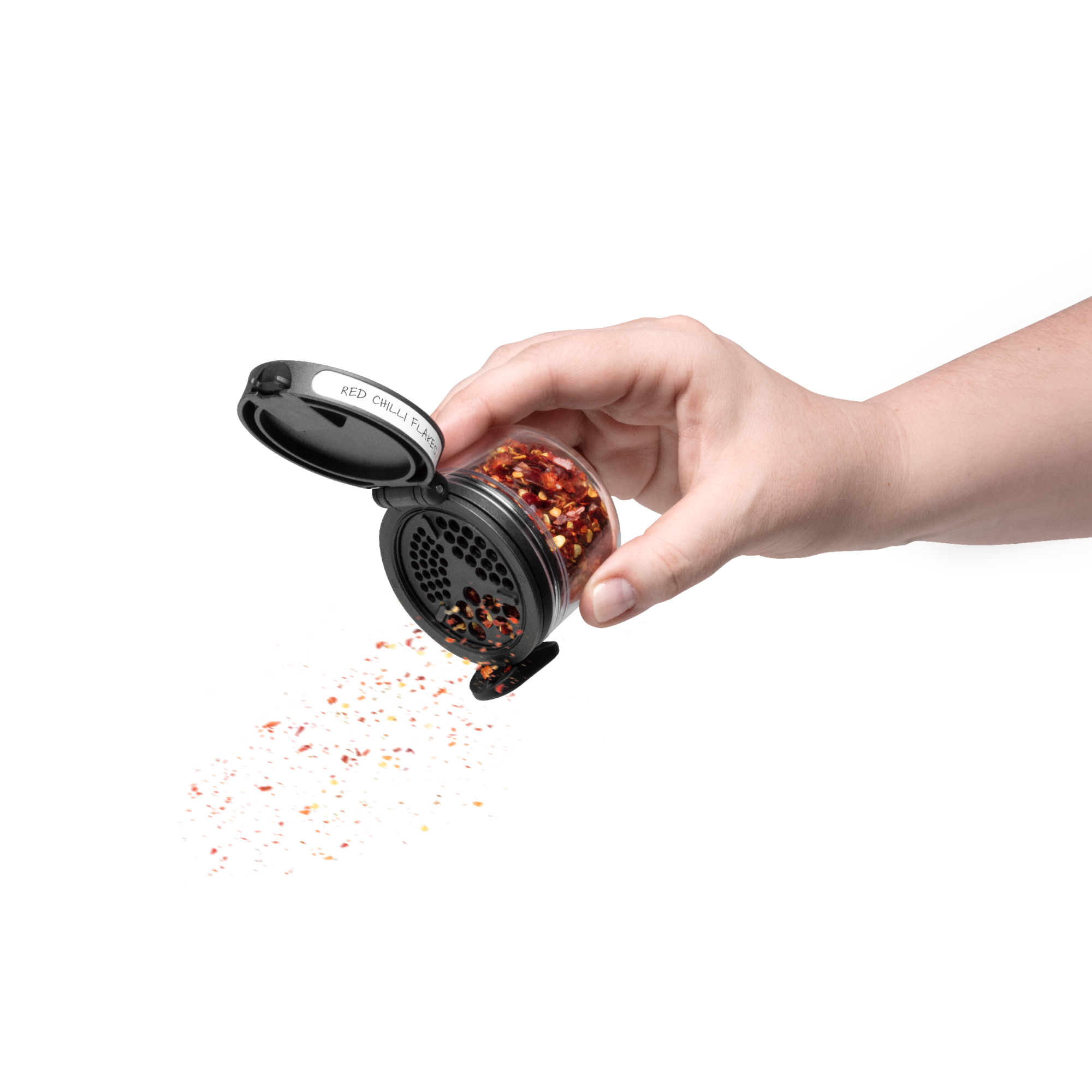 Ühe nupuvajutusega saad valida, kas avaneb raputusava (erinevate mõõtudega) või kogu purgisuu, võimaldades täitmist või lusikaga võtmist.