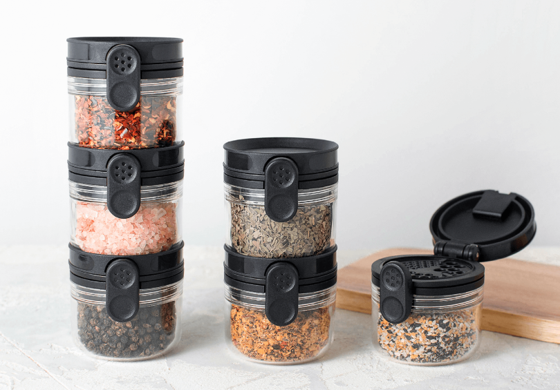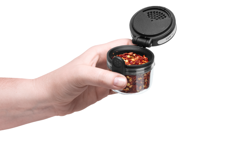 Virnastatav plastist maitseainepurk kavala topelt kaanega, mida saab avada ühe nupuga - kas maitseaine pealeraputamiseks või lusika ja näpuga lisamiseks. Nõnda on purki mugav kasutada ka siis, kui üks käsi peaks olema toiduga koos. Tänu laiale purgisuule on seda lihtne täita. Ning - purk sobitub kenasti ka Ortwo ning Ortwo Lite maitseaineveskiga, tehes maitseainete jahvatamise veel lihtsamaks.