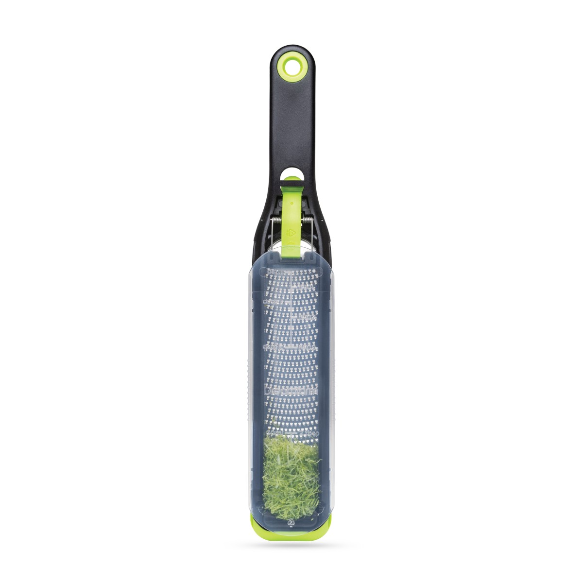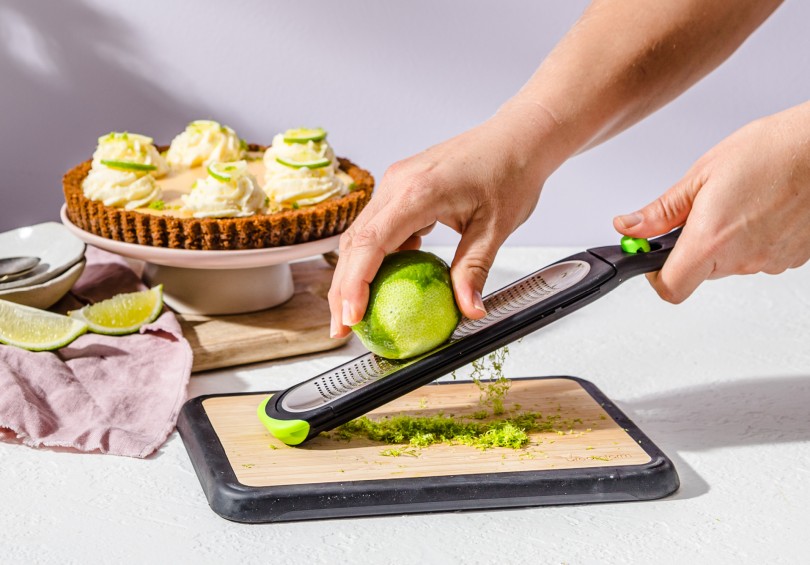 Kaitsekatet saab hõlpsalt paigaldada või nihutada, et hoida riivi nüristumast ning sõrmed terved. See toimib ka tsitrusekoore püüdjana, mahutades kuni 2 spl.